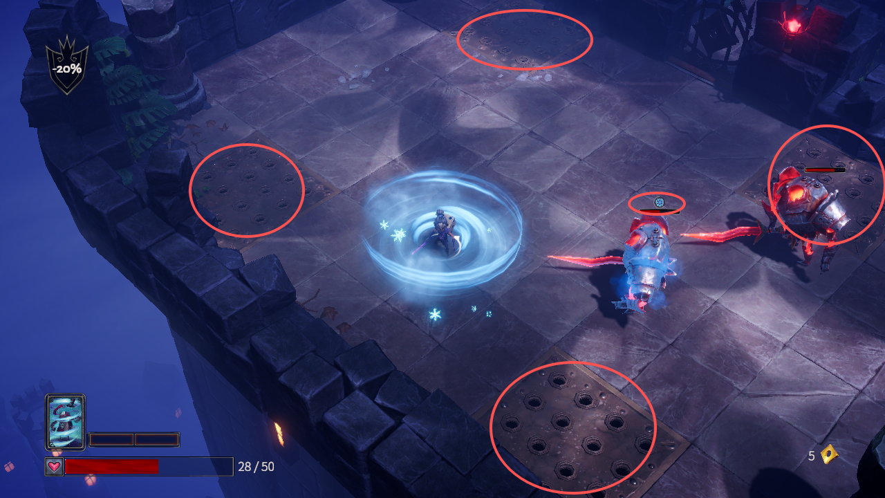 6、技能可以附加属性,可以给予敌人减速,灼烧等buff,在战斗过程中,玩家还需要小心地图中存在的陷阱,当然,陷阱对敌也是有作用的。