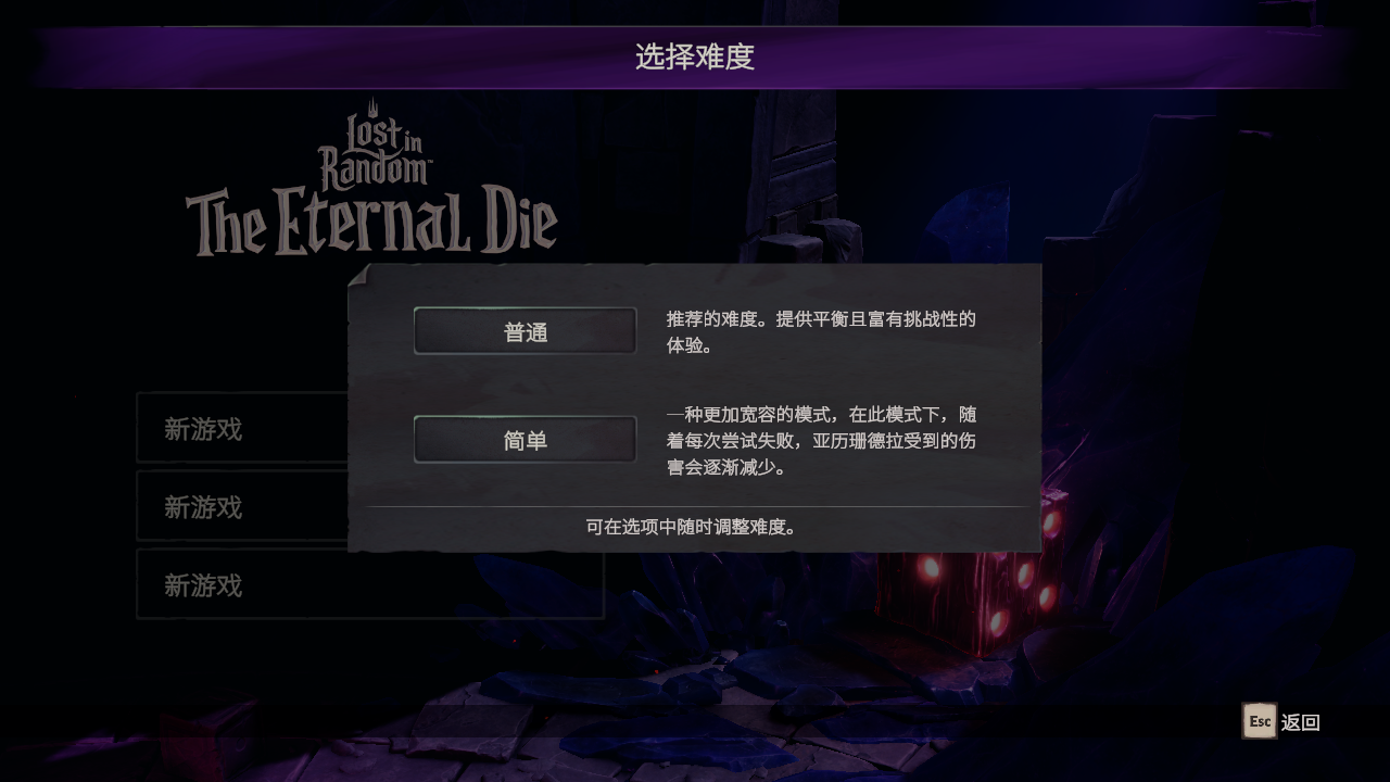 1、游戏开始,可以选择不同的游戏难度,简单难度甚至会随着死亡次数的增加,逐渐降低难度。