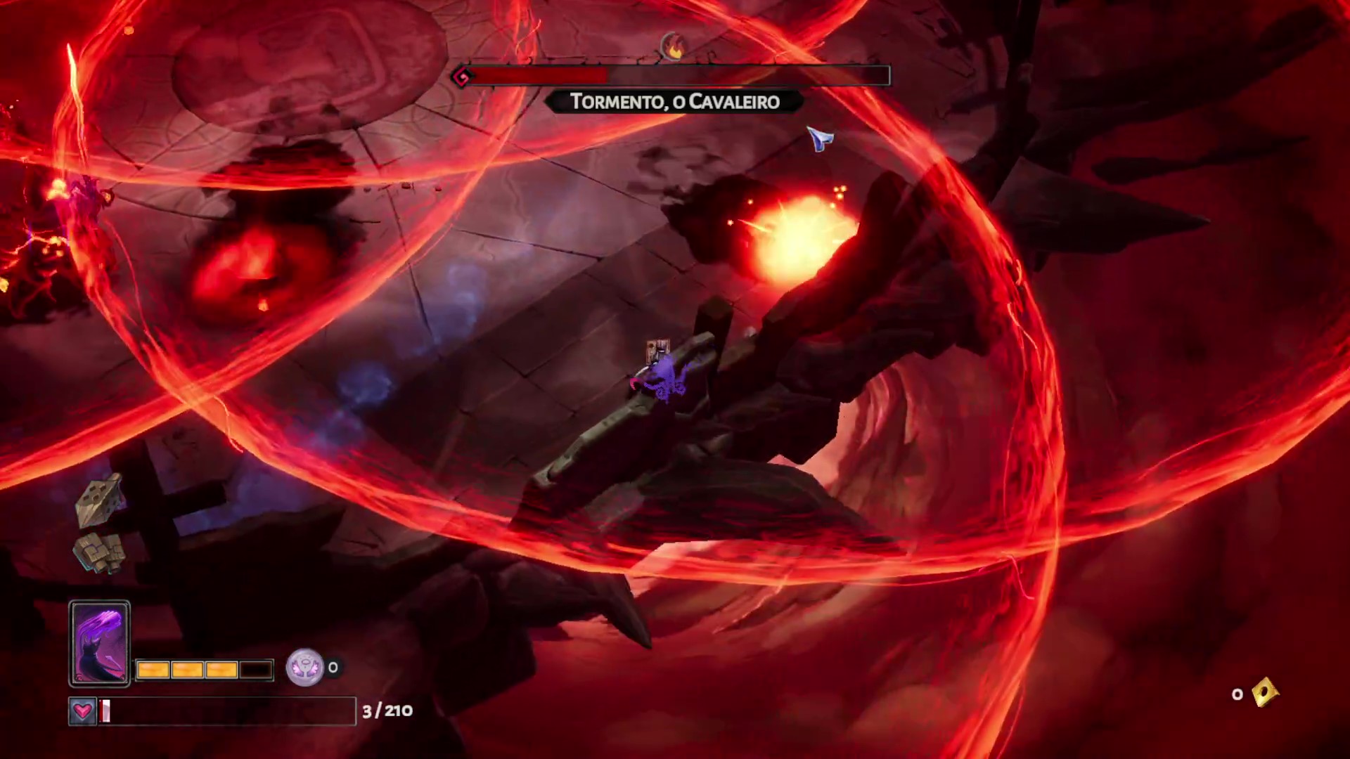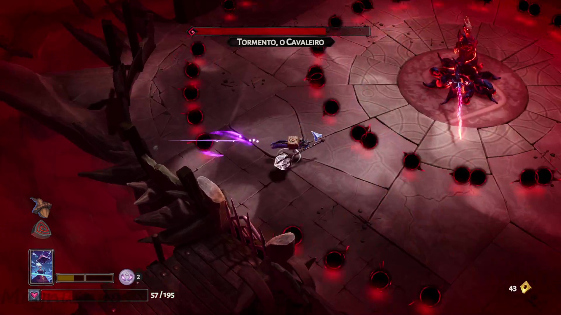 他会召唤出"眼球怪",务必优先击杀它们。这些家伙伤害极高,若你想达成100%完成度,它们会非常碍事。当屏幕布满弹幕时,就只能靠运气和你的技能硬扛了。