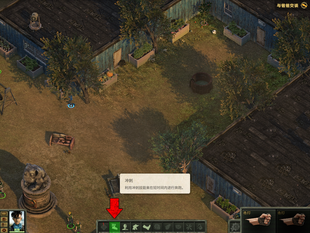 2、和父亲交谈完就可以去下方拿装备训练了。