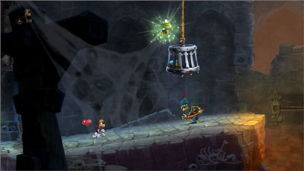 4、这里要先跳在空中解救了精灵再切断绳索。