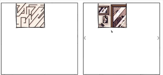在游戏中我们可以看到两张画面,左边这张模拟的是阿尔茨海默症患者眼中、或者说脑海中的世界,不再有具体的整体形象,只剩下简单的线条来构筑整个世界,世界对他们来说,就如同迷宫一般。