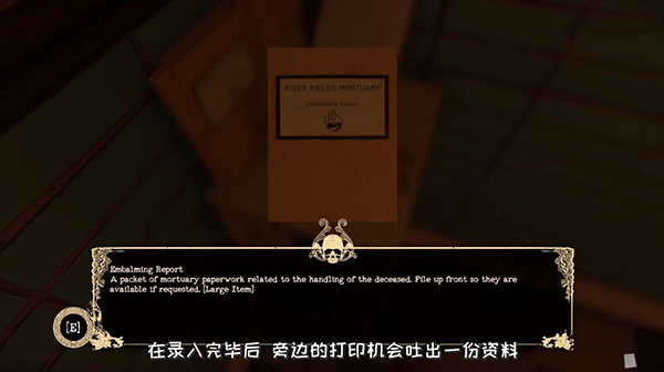 太平间助手(The Mortuary Assistant),一般又称殡仪馆助理、停尸间助手。这是由DarkStone公司发布的一款第一人称恐怖游戏。太平间助手游戏以太平间作为舞台,玩家扮演一名殡仪馆的见习生,平常帮助殡仪师完成日常工作,学习遗体保存技术等相关知识。在实习的几个月里,主角听说了恶灵附身或超自然现象的传言,却不以为然。直到某天深夜,主角被叫到殡仪馆善后,遭遇到前所未有的恐怖事件。你需要一边完成遗体防腐处理工作,一边对抗未知的恶魔进行恶魔驱除。在这个迷幻的世界里,玩家将作为一名刚获得 " 太平间科学学位 " 的毕业生,前往 River Fields 太平间接受一段时间的学徒培训。既然是去当学徒,那自然要干一些脏活累活啦。比如搬运尸体放进冰柜;按照系统要求的姿势摆放尸体;吸出腹部囤积的液体;给牙齿安上固定的牙线;注射福尔马林用于防腐以及应对一些突发的灵异状况。太平间助手游戏开场开车进入太平间的场景还真有点《逃生 1》那万劫不复的味儿。虽然太平间里正等待我们处理的尸体中,有被恶魔附身的情况,但黑心的上司还是在电脑中留下了绝境求生的一丝希望。不需要开动脑筋解开复杂的难题,也无需任何推理,只要足够细心就能发现其中的蛛丝马迹。相信通关这款游戏后,每一位玩家都能成为合格的入殓师和地狱神探了。