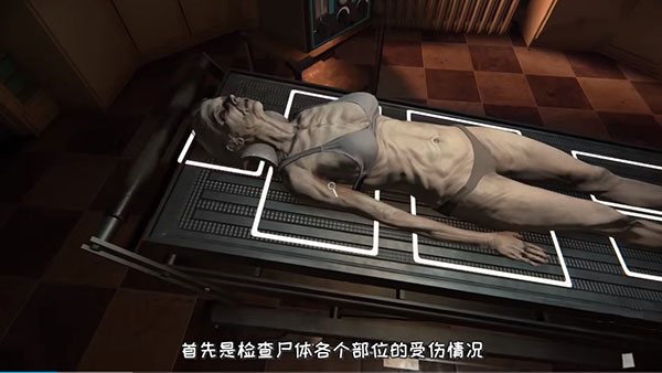 3、在一系列剧情介绍之后,我们就正式开始接受这份工作了,首选是检查尸体的各个部位的受伤情况,并记录下来