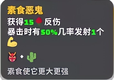 素食恶鬼:获得15反伤,暴击时有50%几率发射一个肌肉。