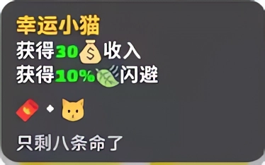幸福小猫:获得30收入,10%闪避。