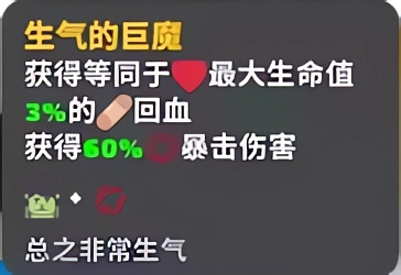 生气的巨魔:获得最大生命值3%的回血,60%暴击伤害。