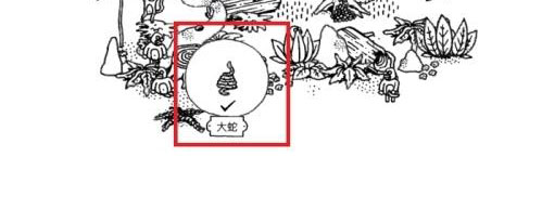 如下图,点击地上那条蛇,多点击几次就会吐出来一只鸡,点击鸡即可