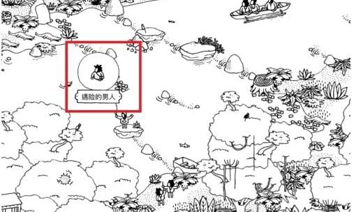 左下角最下方有一处地方有很多停留的鸟,多点击几次让鸟儿飞开,会露出一个人,点击这个人即可