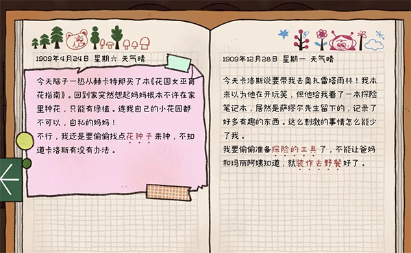 23、来到粉色1909年,打开窗户,点击窗外的土堆,将之前蓝色场景获得的无花果放入。再点击有提示说,种子现在还很虚弱。