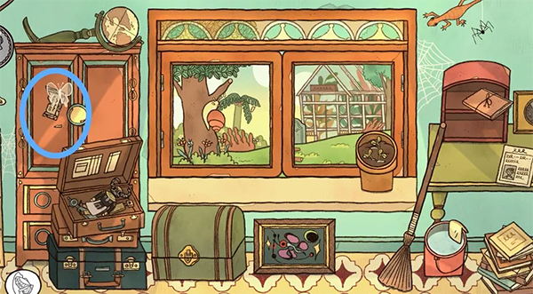 26、来到1910年,点击窗外开的花,得到蚯蚓。将蚯蚓给停在树上的鸟,得到掉下来的一节树枝。点进获取树根下的铲子头。