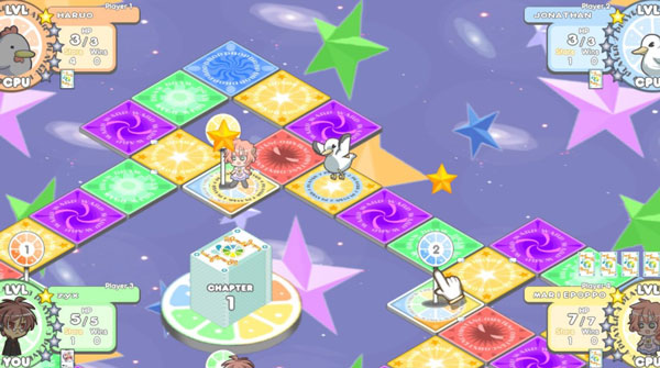 100%鲜橙汁是由Fruitbat Factory游戏公司制作并发行的一款休闲益智类卡牌策略游戏,游戏画风非常日系小清新,而且游戏人物也是十分的萌趣。该游戏的规则也是十分简单,四个玩家共同游戏,在游戏的初期玩家有4个人物可以选择并通过掷骰子来走格子,完成收集星星或者击杀特定数量敌人可以在初始点进行升级,率先升满5级的玩家即可获得胜利。同时,游戏还加入了战斗和卡片收集等多种游戏元素,而且每个角色都有对应的基础属性值和HP,玩家之间可以相互战斗夺取对方星星和获得击杀数,而在游戏的地图中还有着各种各样的随机事件丰富了游戏的剧情内容,给整个游戏过程中带来了极大的变数。值得注意的是,在游戏中还加了独特的装扮系统,每个游戏人物共有发色,姿势,衣服,装饰,定制起点和色子等6种装扮,玩家可以根据自己的喜好随意装扮角色,极大提高了游戏的可玩性。