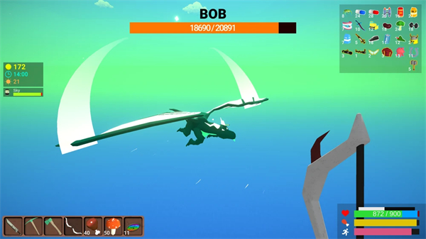 Bob 是 Muck 的最终 Boss。一旦玩家修理修复的船了沉船并离开了岛屿,它就会生成。它的生命值远远超过游戏中的任何其他 Boss。虽然失败时不会掉落任何内容,但玩家将看到他们的表现摘要屏幕,并提示他们离开游戏。