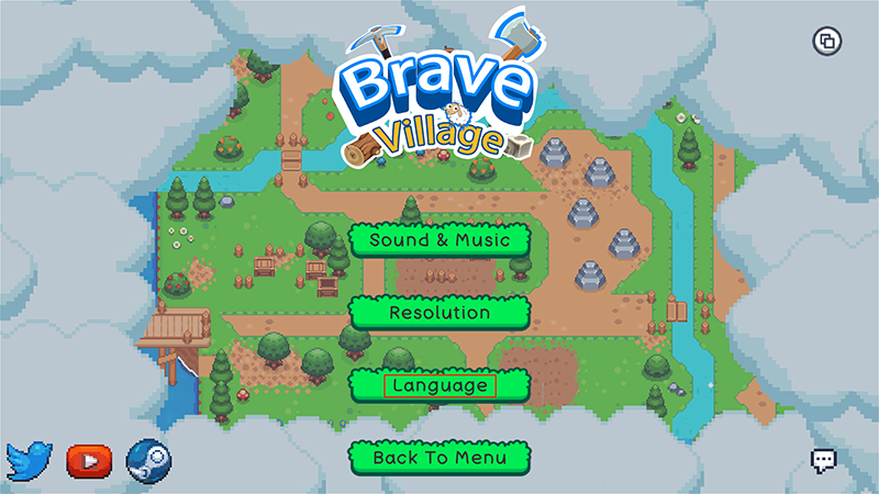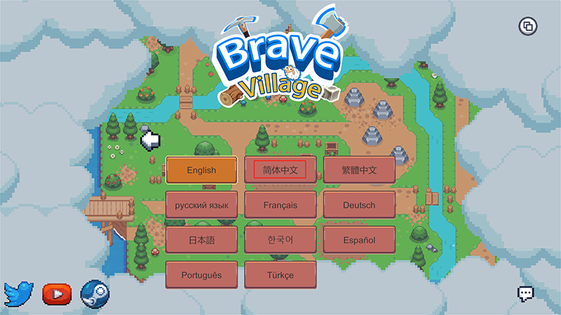 《Brave Village》是一款经典像素风模拟冒险游戏,玩家需要经营自己的小村庄,收集资源、种植作物、制作装备和食物,同时通过战斗击败哥布林和骷髅怪来保护村庄。游戏界面可爱,操作简单,适合休闲娱乐。对于新手来说,可以通过设置语言为简体中文来更好地体验游戏,进入游戏后点击“Settings”再选择“Language”就能轻松切换。