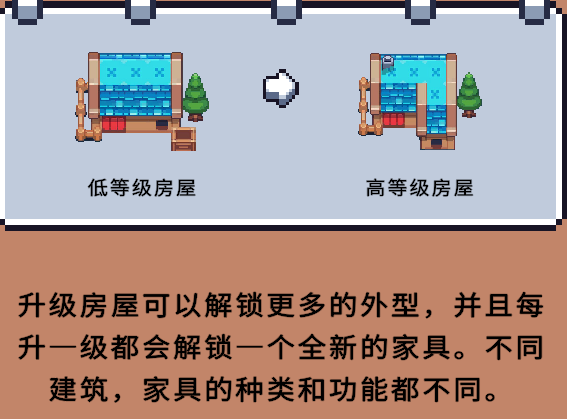 每个村民都有一个温馨的小家。玩家可以通过升级建筑和购买家具,打造更舒适的生活环境,提升村民的幸福感。