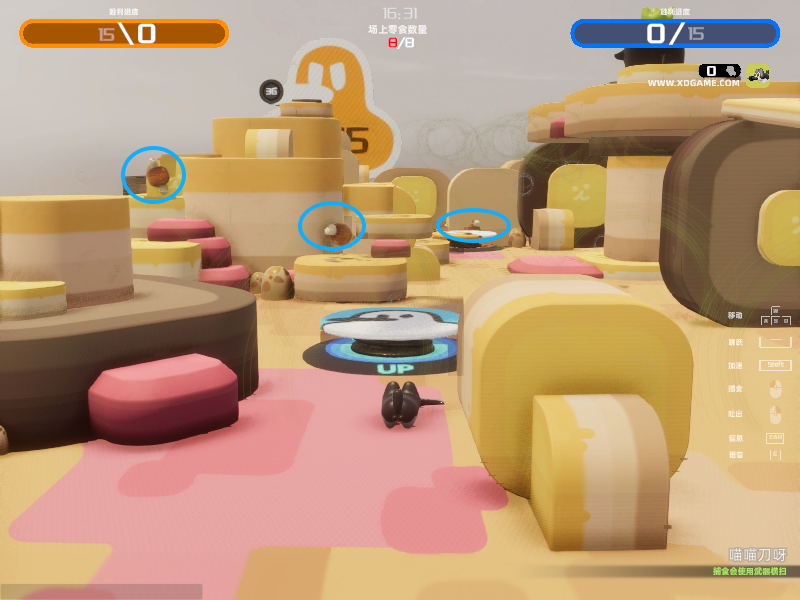4、而红蓝双方需要小心管理员的追捕,又要与对方共同抢夺食物。