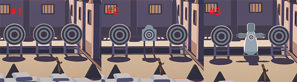 射靶子那里一共有三个,第一个自动瞄准,第二第三个都需要调整,参考物就是旁边的靶子,如图中心对齐就行。(没对齐别装弹就行,装弹后就自动射击了)