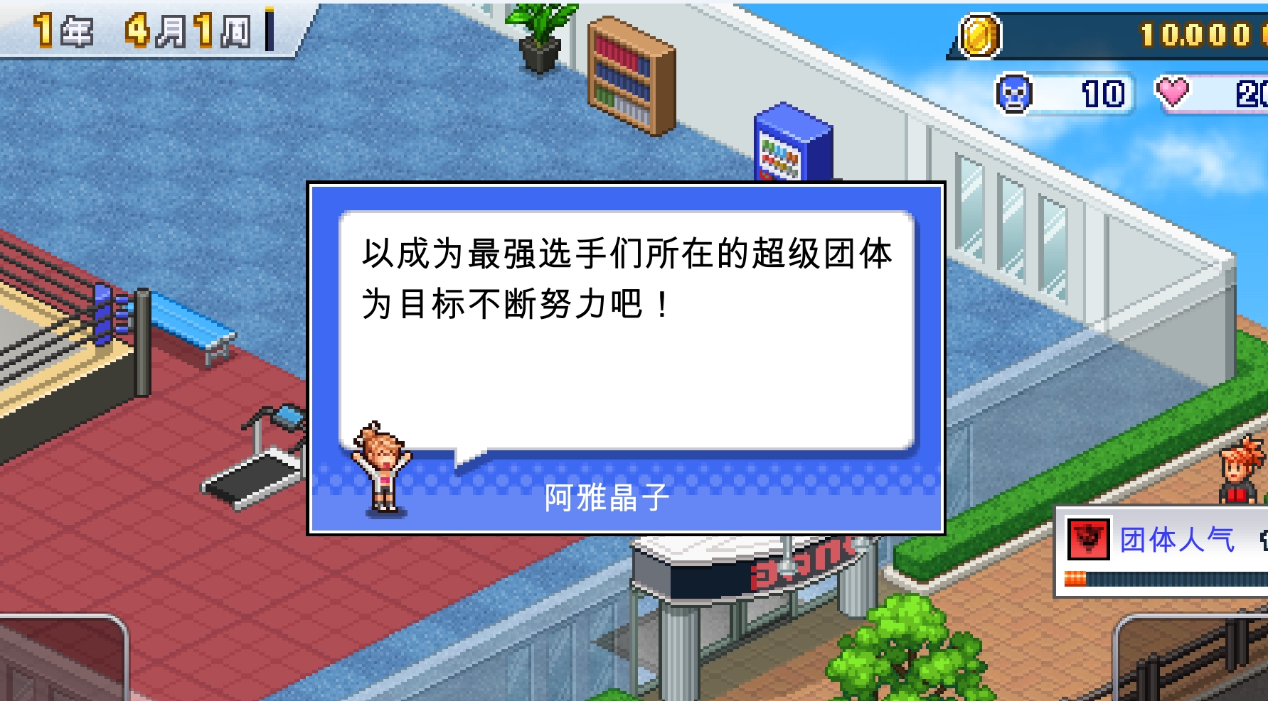 游戏采用经典的像素画风,角色动作生动,场景细节丰富,营造出轻松诙谐的氛围。玩家需要经营一家摔跤俱乐部,从招募选手、训练提升能力到安排比赛,逐步扩大俱乐部规模。