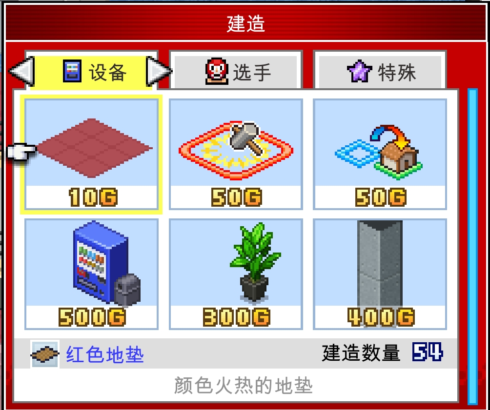 5、在左上角点击建造,玩家可购买放置训练设施。