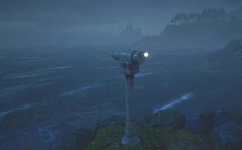 接下来根据游戏的流程会走出大宅来到悬崖边看到望远镜,然后操作望远镜眺望老房子。