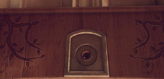 首先是大宅的1楼,面朝大门的左边是图书馆的门。这个也是所有需要在猫眼查看的门里唯一没有名牌的。