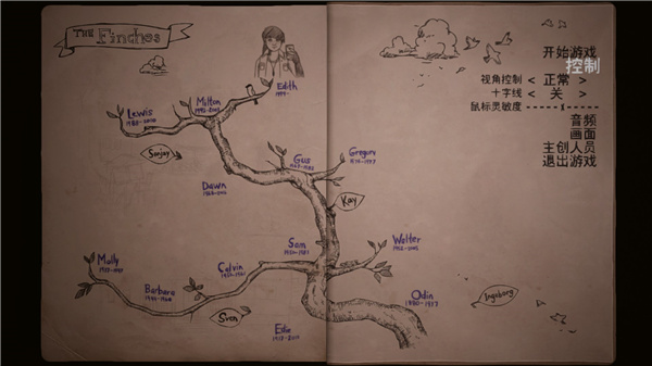 2、完美的步行模拟器,控制伊迪斯·芬奇在芬奇家族的老宅中探索,感受十数位亲人死亡前的故事