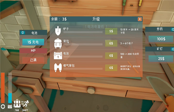 最近我试着玩了一下《掘地求财电脑版》这款休闲益智游戏,发现它挺有意思的。游戏的核心玩法就是在后花园用铲子挖矿石,然后卖钱升级工具和装备。最开始的时候,你只有基础工具和小背包,每次挖掘都要消耗电池能量,如果没电了还可能爆炸,听起来有点危险呢。
