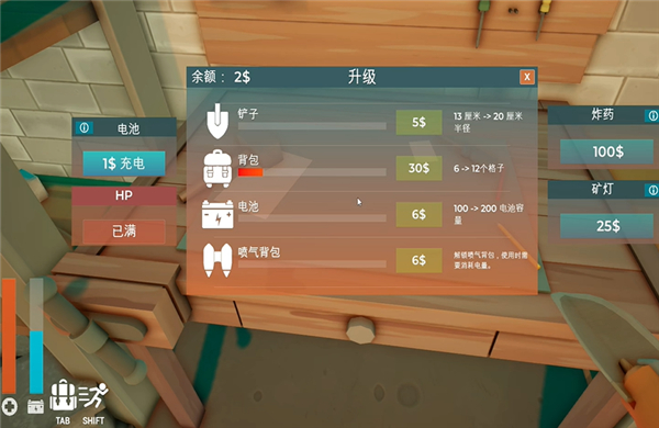 掘地求财电脑版是一款休闲益智游戏,玩家将在后花园中使用铲子挖掘矿石资源,初期游戏仅配备基础工具和有限背包,你的每次挖掘将消耗电池能量,若电池耗尽未充电则可能引发爆炸。掘地求财核心玩法是通过不断深入挖掘、获取矿石并出售赚取金币,从而升级铲子、电池、背包等装备,还可购买喷气背包以加速深度探索,或利用炸弹、矿灯等道具辅助挖掘,而随着深度增加资源越发丰富,可带你感受渐进式的挑战体验。