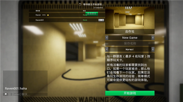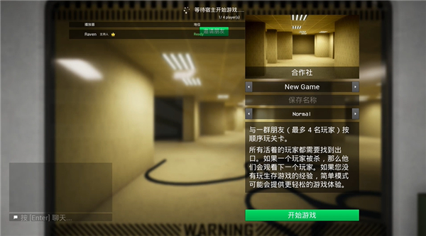 与最多4名玩家组队,一同探索后室。祝你好运:队友可能会通过空间错位到达地图的其他区域,唯有全体队员生还并抵达出口,方能成功逃脱。绝不能落下任何滞留的玩家。