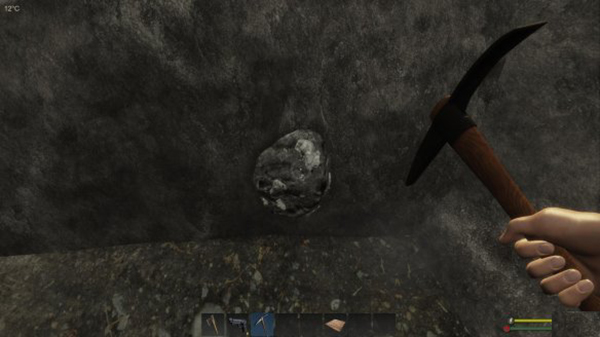 其次,早一些造出矿镐和冶炼炉。采矿比较简单,在地图上石块分布的区域仔细观察, 一般都能发现可以采集的矿石。这个游戏里你能够主动收集的材料基本只有木头、纤维、小动物肉与矿石,还是尽量采集,对基地发展很有帮助。
