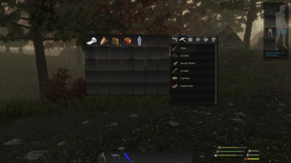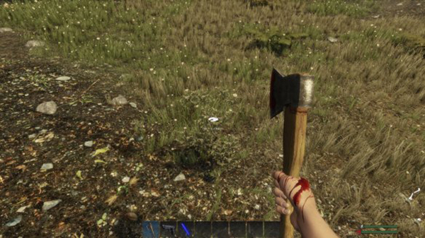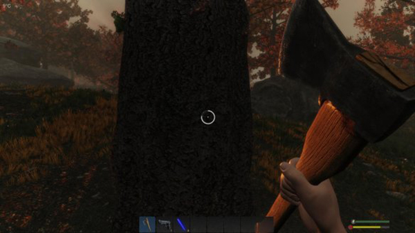 斧头显然是用于伐木,虽然也能攻击,但是本作的近战部分做得非常差,前期还是不要想着招惹野狗熊之类的大家伙了,老老实实砍树吧。游戏中砍树会掉落木块,但是本身树不会消失,隔一段时间后还能再砍。
