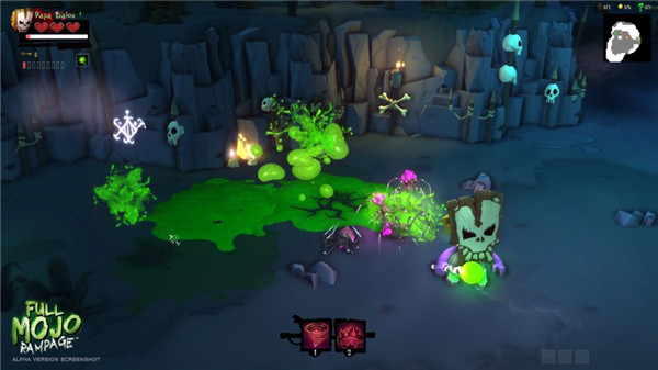 群魔横行是由Over the Top Games进行制作的一款动作冒险类游戏,它在2014年进行游戏的发售,游戏的风格主题是巫毒世界,充满了各种各样巫毒风格的娃娃,道具,魔法,装备,卡片和风景等等。群魔横行的画面精美,风格很Q游戏的可玩性非常高,你需要收集或者用游戏中的金币购买各种道具啊药水啊法杖啊等等,搭配来使自己强大,从而顺利闯关!多种的职业,多种的技能,多种的游戏模式,操作很简单。在这个领域,只有最强大的仪式和权力才能提供抵御邪恶的保障。死亡不是结束,只是开始成为更强大的巫毒灵魂!玩家所扮演的这个“大Baby”是一名巫毒学徒,在一个偶然的机会下和众神取得了联系。众神帮助学徒摆脱了危机,而学徒也从此开始为众神打杂,开始了自己的冒险。