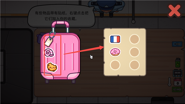8、有些行李箱上贴有贴纸,点击右键或者双击左键进入游戏中,将贴纸收纳。