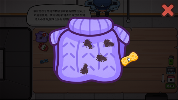 6、有些衣服脏了,带有感叹号,玩家点击右键或者双击左键进入小游戏中。