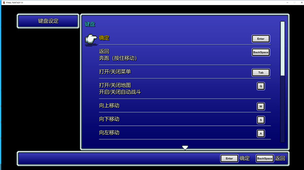 4、点击键盘设定,可看到游戏中所有的键位说明;