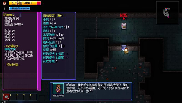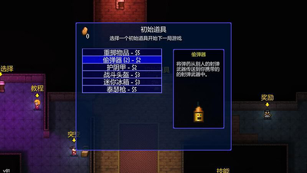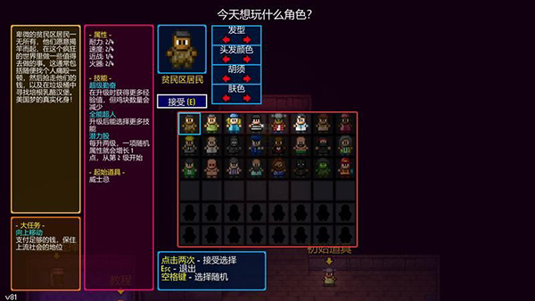 角色外形可以自选,自定义角色还能让你选择属性、技能和初始道具。