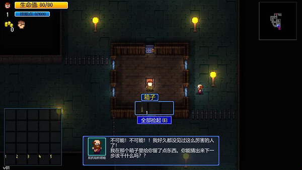 通过按E可以开门、开箱子,物品也需要按E拾取。