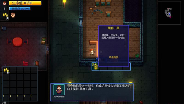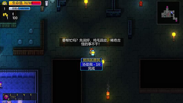 和NPC互动可以购买、雇佣、获取任务等等。