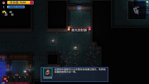 游戏中还有许多机关陷阱,例如激光发射器。