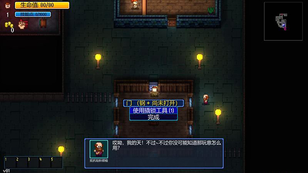 图中有撬锁工具就能开启,或者你获得钥匙、使用炸弹等都可以开门。
