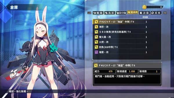 装备搭配:主炮全高爆,防空带金四联,鱼雷全彩色磁雷,设备全部九三式纯氧鱼雷,看完断章拿到Z旗之后也可以给主C带个Z旗+航速+暴击率+射程。