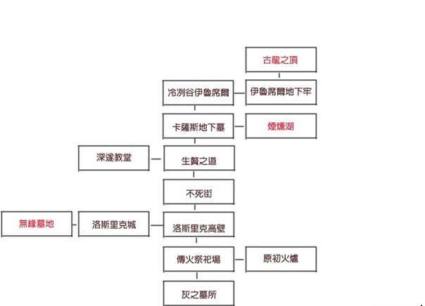 灰之墓所>高壁>不死街>生赘之道>地下墓>冷冽谷。
