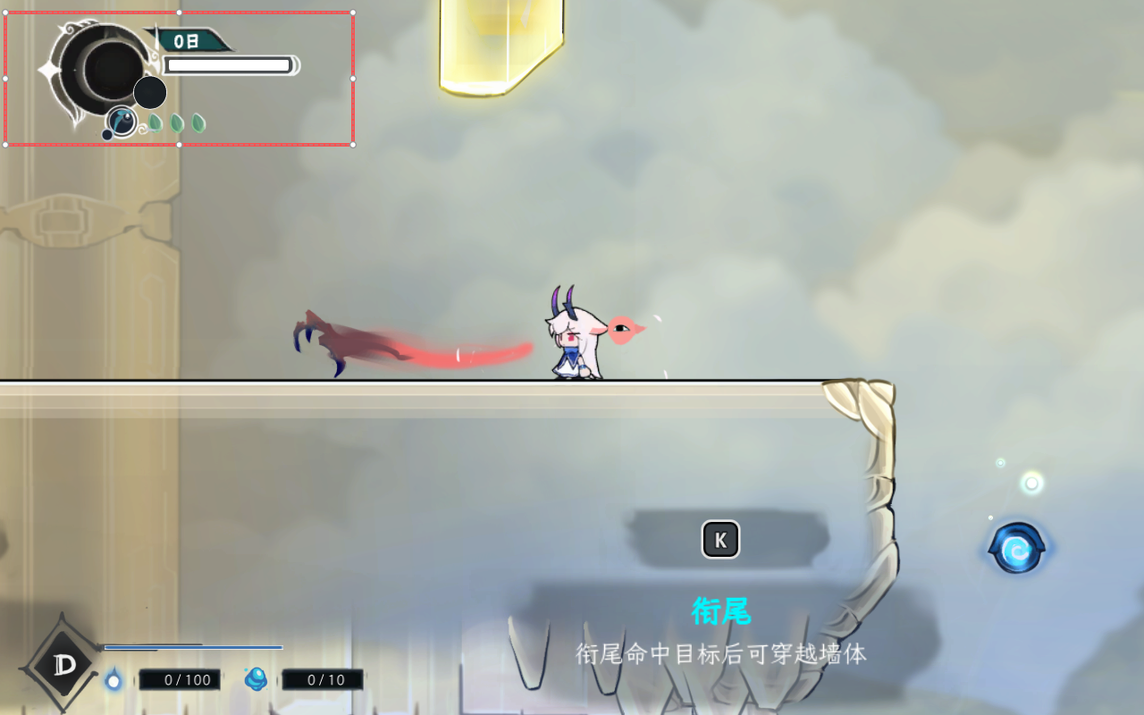 3、“衔尾”是游戏中的一个技巧,类似绳索,可以勾取特定的物品,从而跨越障碍。