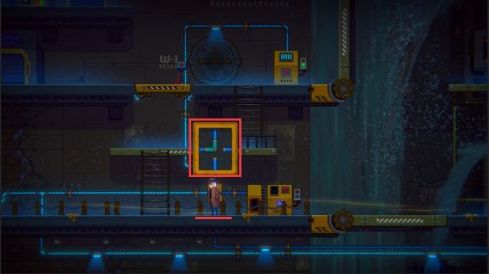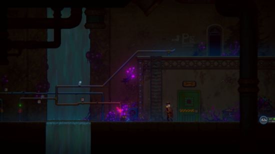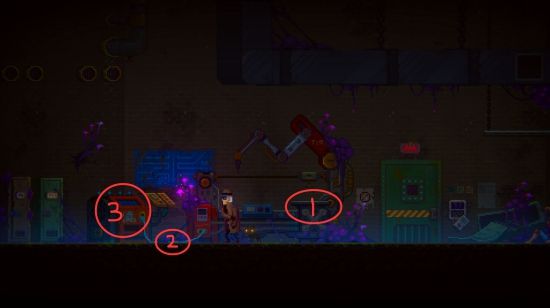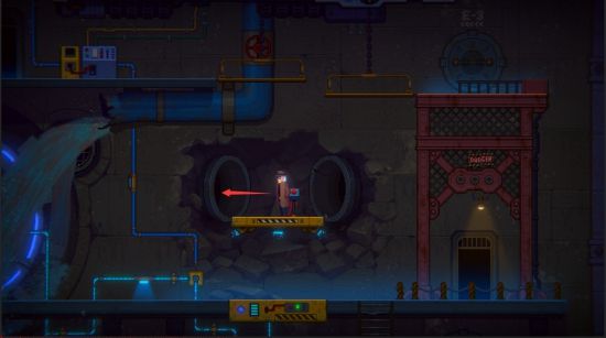鸟面人会在门关闭前闪过来,继续往右边跑,拉开红色蒸汽扳手