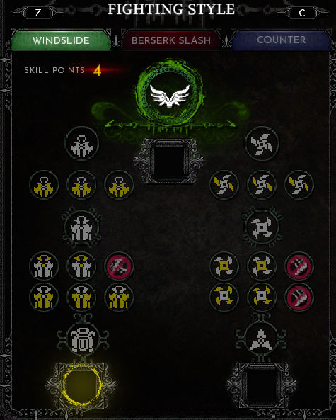 图中的三个空格也是用来放碎片的 左右下角的因为demo技能点不够点到那所以不知道什么效果,放在中间会改变风格的主动技能