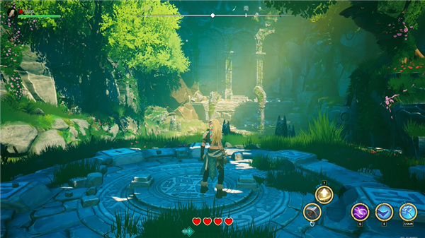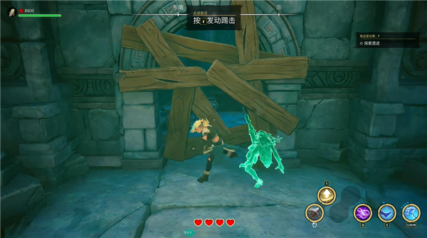 2、进入地图后开始冒险,界面中可以看见角色的血量以及经验值、技能;