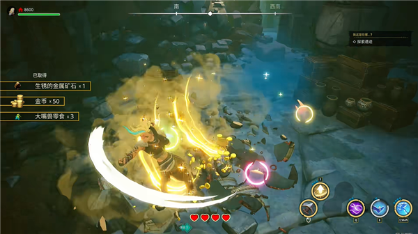 4、场景中有不同的宝箱以及木桶,打开它们可以获得资源;