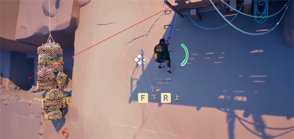 7、攀爬至第一个峭壁后,安装岩钉,荡入下图箭头所指的房间内