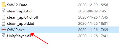 2、在游戏根目录找到“SvW 2.exe”,双击它就可以进入游戏了;