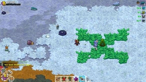3、Crafty老祖母家门前有一个晶石,触碰后,Flux会在短暂时间内获得一对飞翼,能够让他跨过水域,不过还是建议在老祖母家门前搭建木板度过水域。